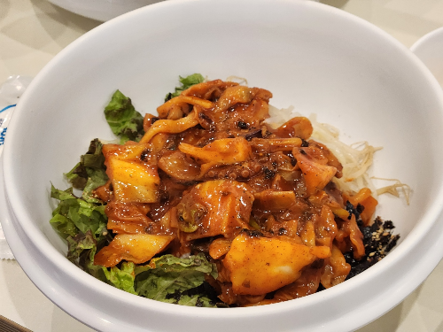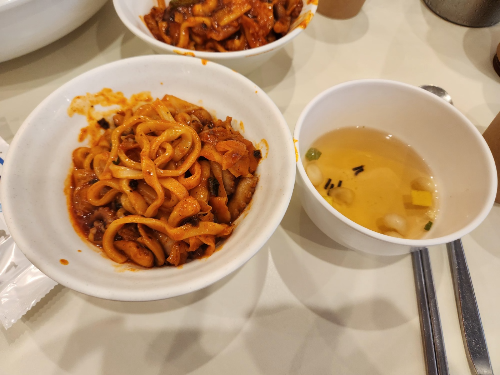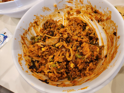 칼국수 먹고 남은 소스랑 낙지를 넣고 비볐습니다!